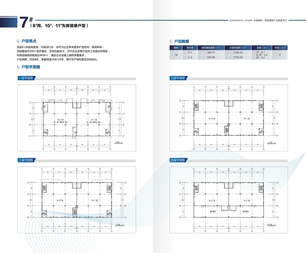 层高8.1/4.5/4.5/4.2m,标准层承重800kg/㎡。
