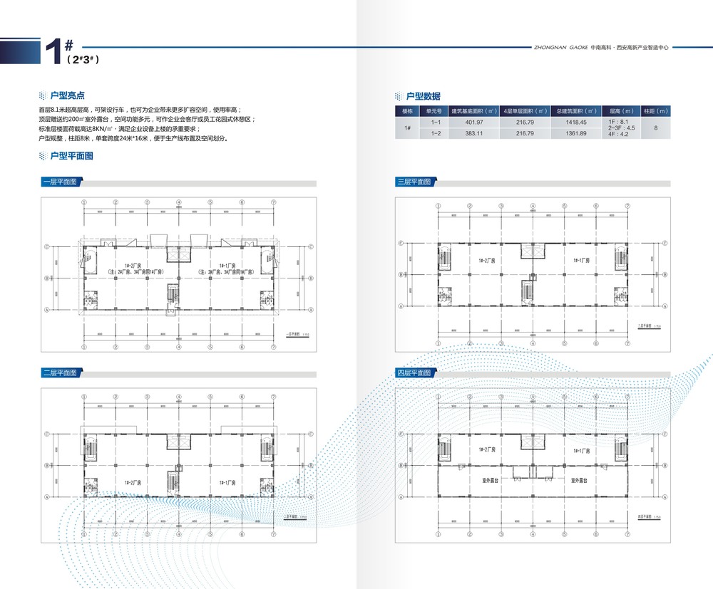 一梯一户,单户面积600−800,标准层高4.5m,承重450kg/㎡。