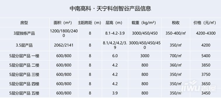 【产品参数】:9*9柱距、8*8米柱距;一层楼高8.1米:可架行车,二楼以上4.1米