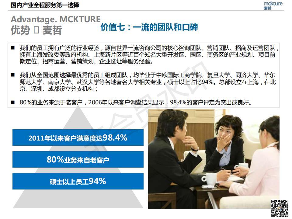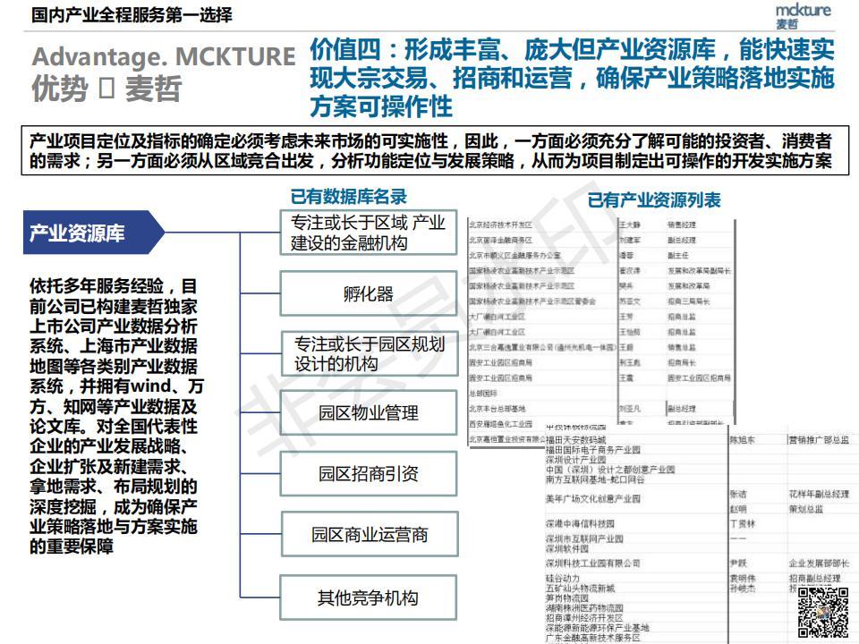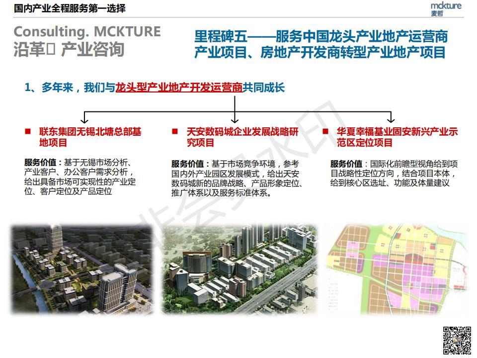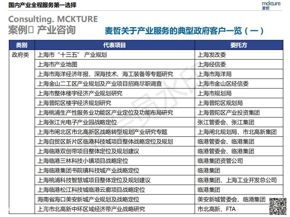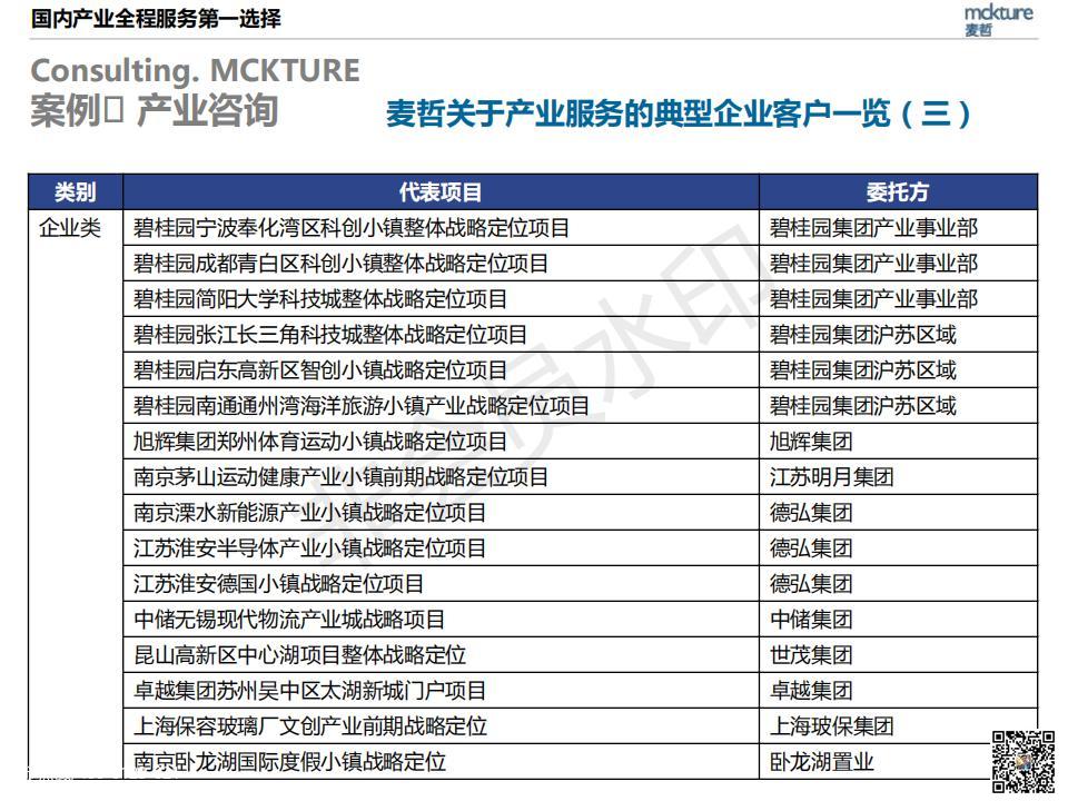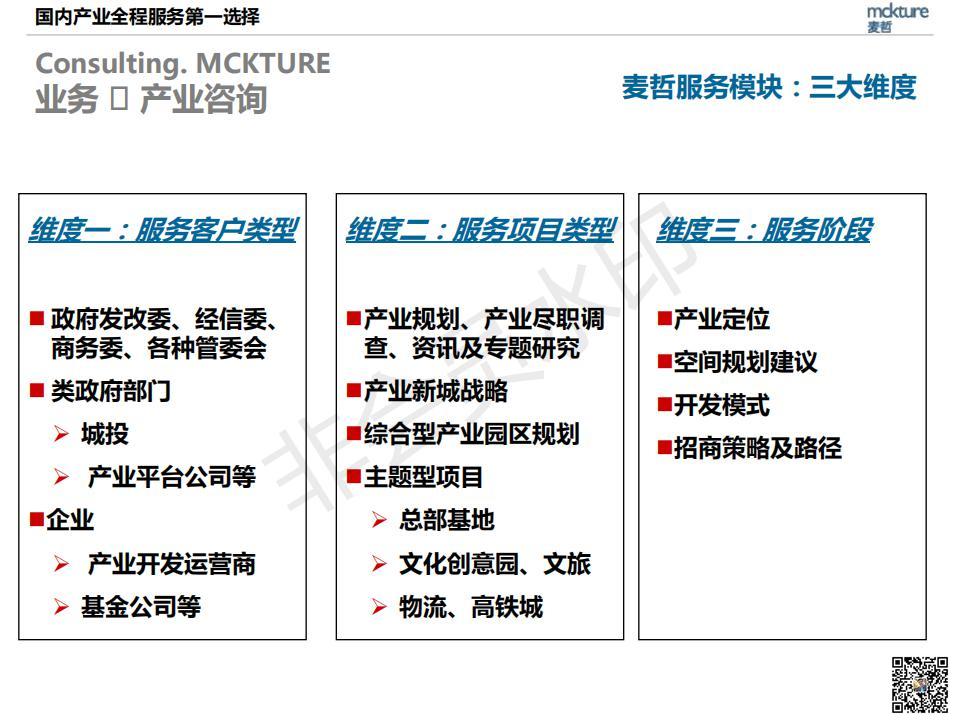 招商网&麦哲(中国)为中国各级政府、管委会、平台公司、产业地产投资者等客户提供政府产业培训考察、产业调查研究、产业规划、区域战略咨询、产业新城战略定位、产业园发展战略规划、区域开发模式和开发策略、产业招商、产业运营、产业基金等业务。在多年的专业服务实践中,和中国社科院、复旦大学、中欧国际工商学院等知名高校和研究机构有长期战略合作,拥有丰富的知识案例库、互联网产业平台、产业企业及运营数据库、产业研究院等,致力于为客户提供zui有价值的产业全程服务。