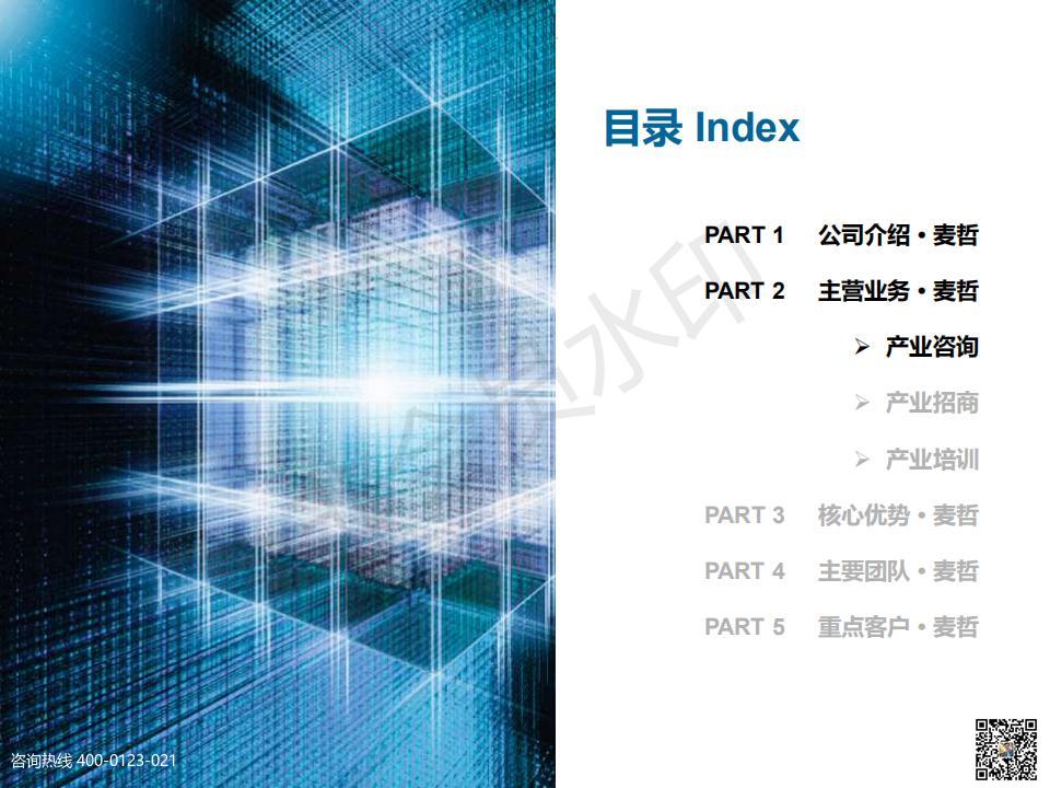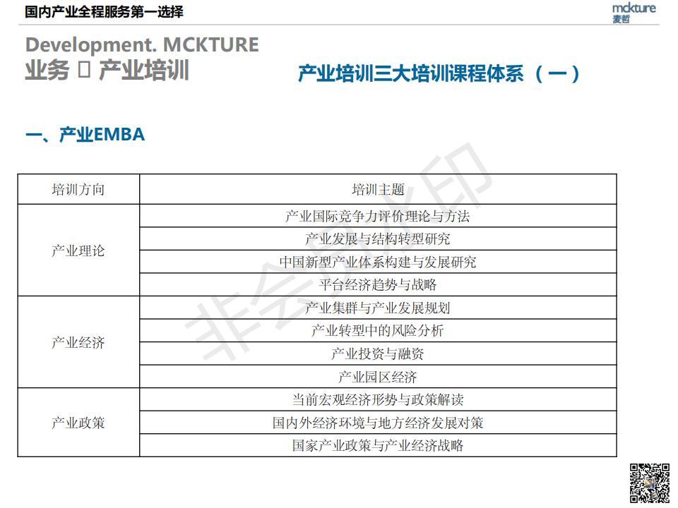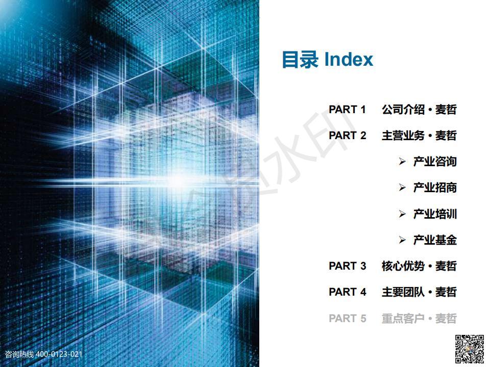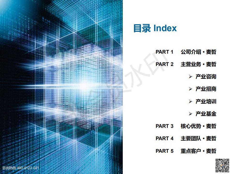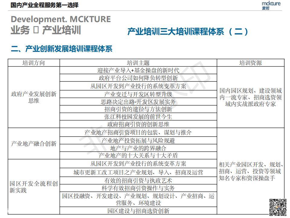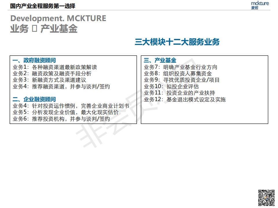 招商网&麦哲(中国)为中国各级政府、管委会、平台公司、产业地产投资者等客户提供政府产业培训考察、产业调查研究、产业规划、区域战略咨询、产业新城战略定位、产业园发展战略规划、区域开发模式和开发策略、产业招商、产业运营、产业基金等业务。在多年的专业服务实践中,和中国社科院、复旦大学、中欧国际工商学院等知名高校和研究机构有长期战略合作,拥有丰富的知识案例库、互联网产业平台、产业企业及运营数据库、产业研究院等,致力于为客户提供zui有价值的产业全程服务。