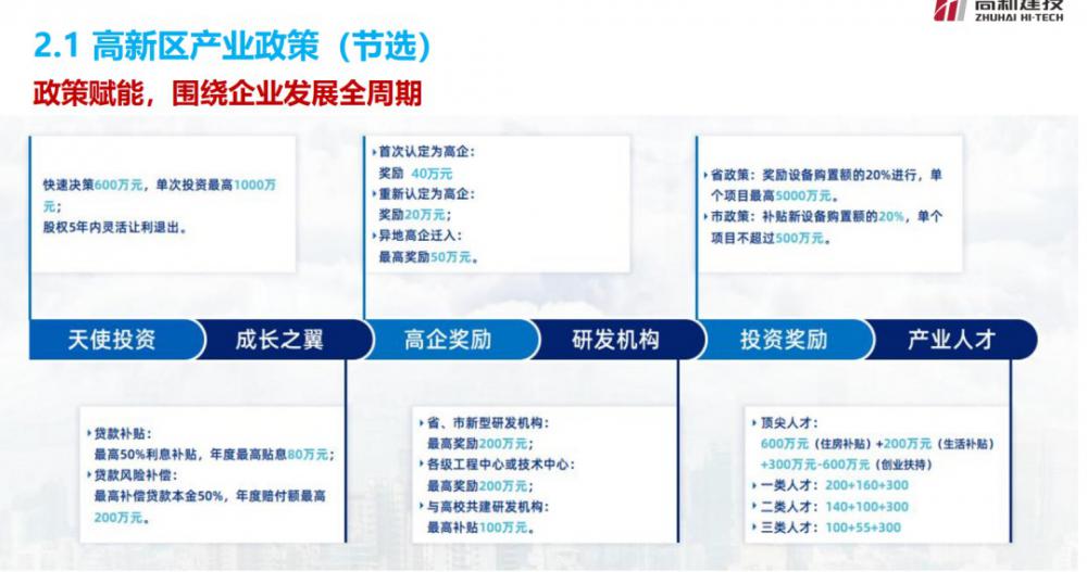 珠海高新区,一个充满活力、机遇和创新精神的地方,正张开双臂,欢迎国内外企业前来投资兴业。这里不仅有优越的区位条件、坚实的产业基础、全方位的政策支持、丰富的人才资源、高标准的产业园区和完善的生活配套,更有打造未来科技城的宏伟蓝图。选择珠海高新区,就是选择与未来同行,与成功相伴。让我们一起,让城市向前一步,共创辉煌明天。