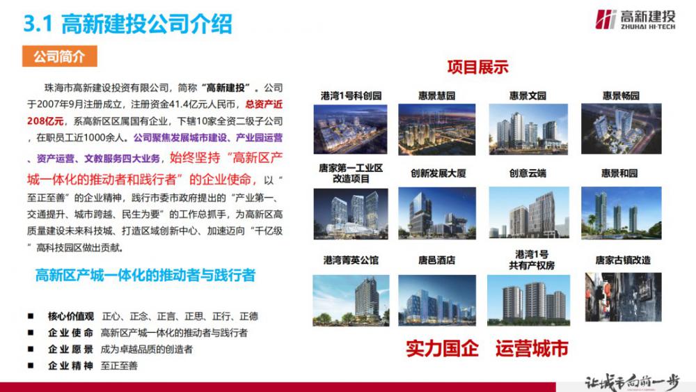 珠海高新区的战略目标是打造未来科技城,成为区域创新中心和“千亿级”高科技园区。通过构建“4 1”业务战略布局,即城市建设、产业园运营、资产运营、文教服务四大核心业务和金融业务,高新区正加速迈向高质量发展的新阶段。