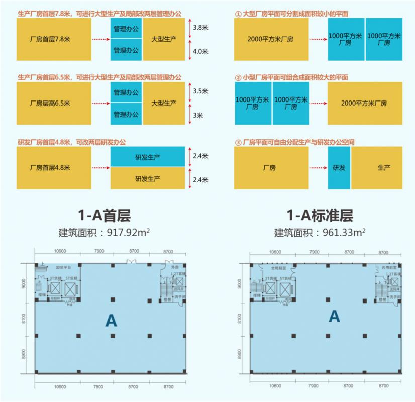 【户型面积】单层约910-2000㎡,独栋8000㎡,整栋16000㎡。