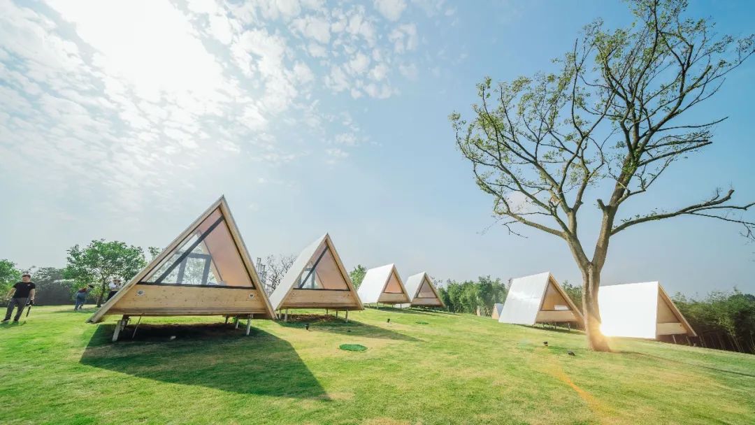 高山、草地、蓝天、白云,躺在帐篷内,宛如住进自然里。