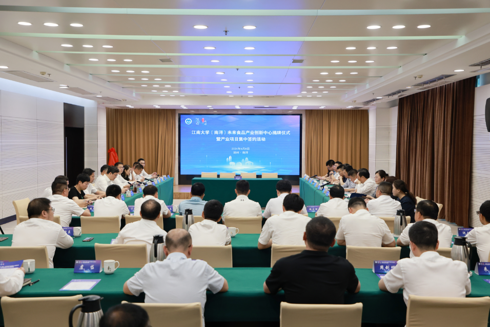 6月8日,江南大学(南浔)未来食品产业创新中心揭牌仪式暨产业项目集中签约活动举行,标志着江南大学与南浔区全面开启校地合作新征程。副市长金凯,江南大学党委副书记戴月波,区委书记温建飞出席仪式。区委副书记、区长程佳主持仪式。区领导张文斌、沈振宇、卫良、丁一平,以及市区相关部门、江南大学、江南大学国家大学科技园有关负责人等出席。