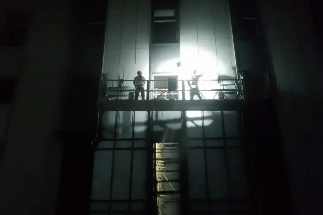 •抢工期,抓建设进度,昼夜施工,工地现场井然有序,进入交付前施工冲刺阶段。