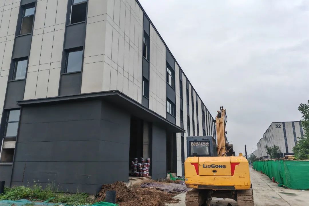 中南高科·鸢都智谷产业园克服重重困难,抢工期,抓建设,目前二期一二流水整体形象已经呈现,现场施工设备、建筑材料有序运作,施工队伍加班加点,连夜施工。外立面建设、门窗安装、管网铺设同步在线,齐头并进,争取尽快将厂房建设完毕,达成竣备验收要求,早日将厂房交付到园区业主手中。