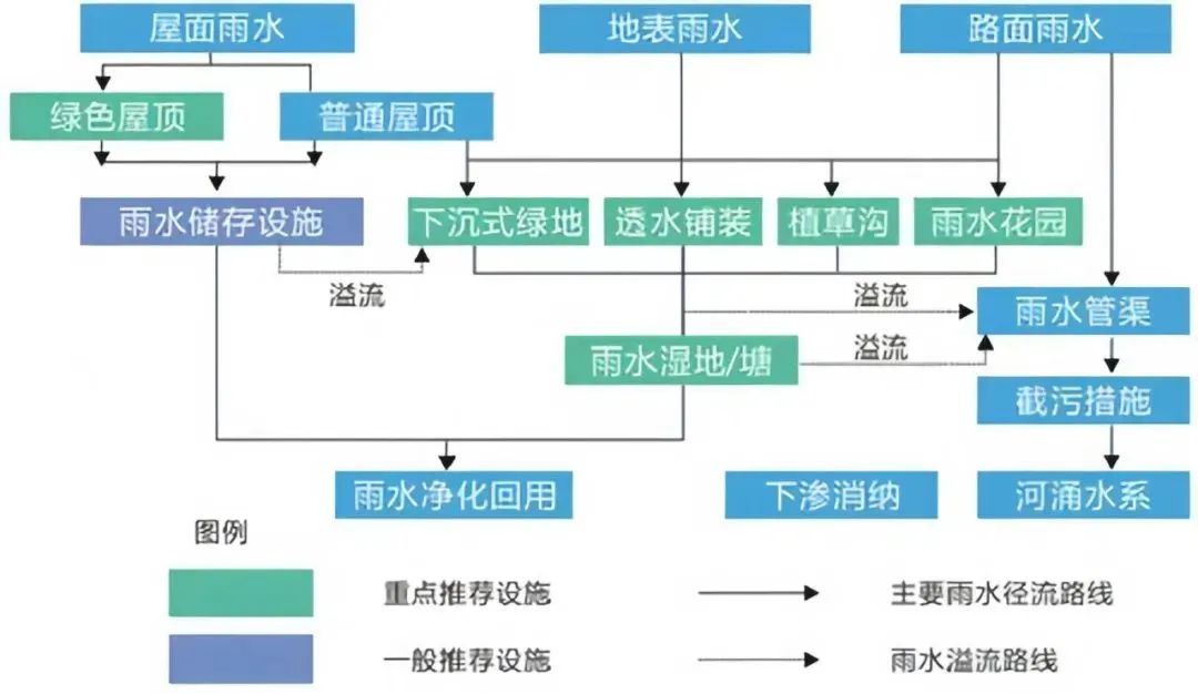 经过净化后的雨水被收集到雨水调蓄池,超过蓄水标准的雨水被排放到城市雨水管网,可以减缓强降雨对市政管网和整个片区的排水压力。