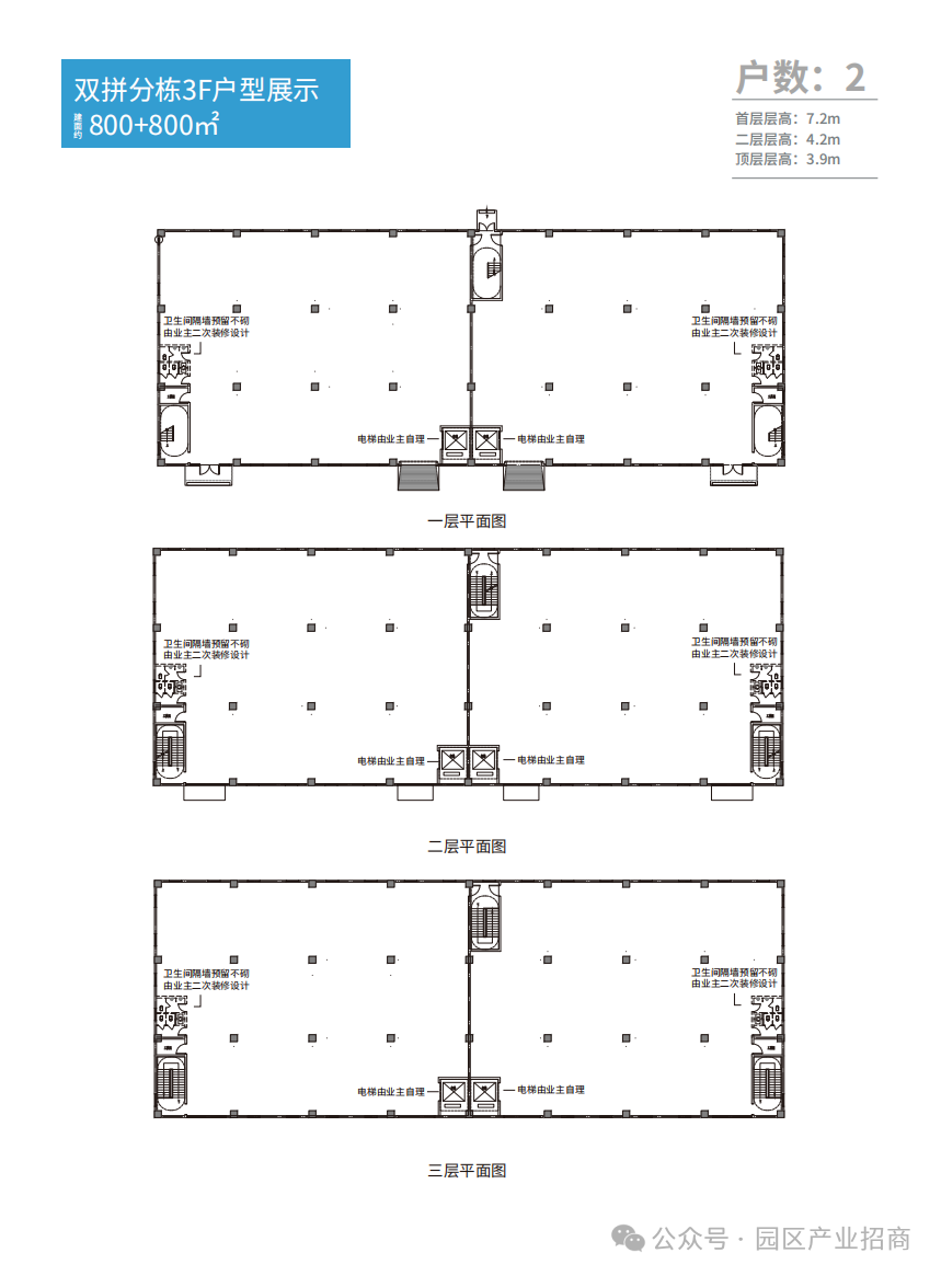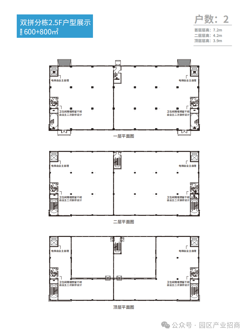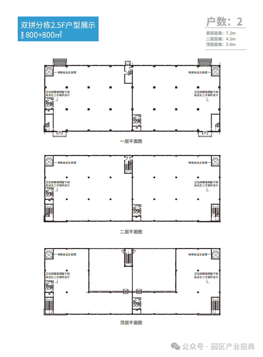 电梯:整栋预留2t电梯井(3.2m*2.8m),支持定制;分层安装2t电梯;