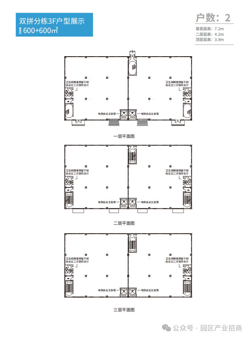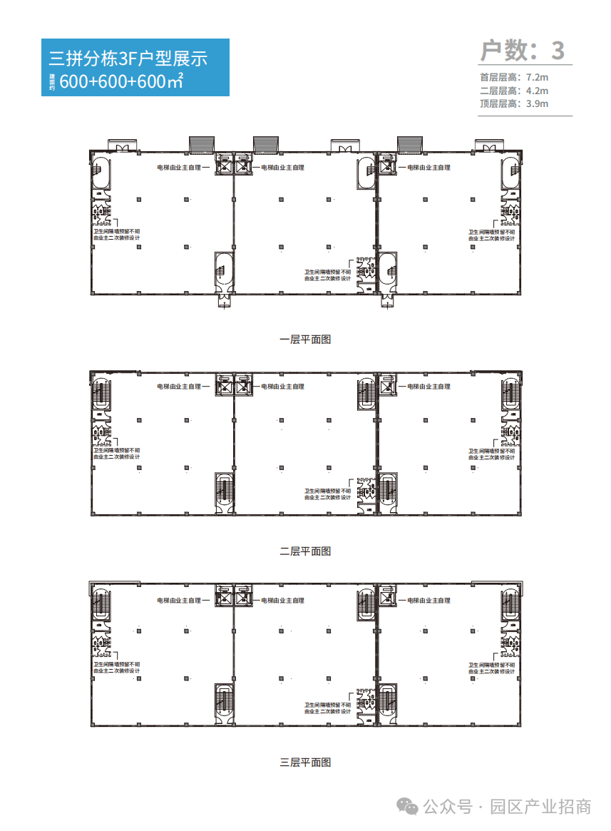 层高:首层:7.2m;二层:4.2m;顶层:3.9m