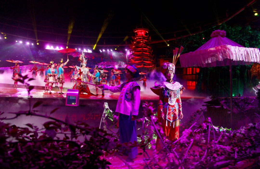 《坐妹》是首部侗族风情大型实景演出,演出通过“走姑娘”“闹姑娘”等四个篇章,将侗族地区丰富多彩的传统文化元素比如耶歌文化、婚恋文化倾情展现,同时与全国蕞大蕞复杂的梯式led显示屏以及高科技电脑灯光相结合,演出效果如梦幻世界一般,凡观赏过此演出的人,无不叹为观止!