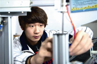 ■青岛职业技术学校学生在实训中。国际职教城的开建,必将使青岛职业教育实现质变。