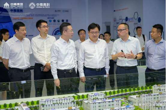 隨後,一行人員參觀了中南高科重慶大健康智慧谷項目展廳,中南高科産業集團重慶公司總經理陳碩為各位區領導介紹了中南集團、中南高科的佈局,重慶公司的發展,以及對落地巴南的展望。