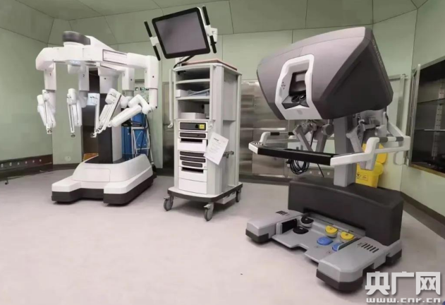 手术台上方一位达芬奇手术机器人正在为患者手术(央广网发 通讯员 张 岩供图)