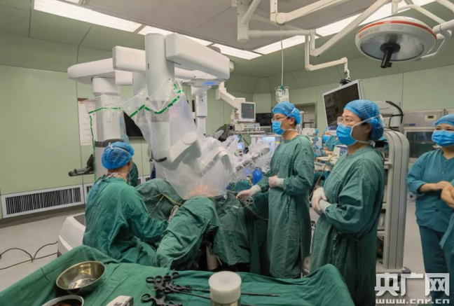 妇科手术团队正在为一名患者进行微创机器人手术”(央广网发 通讯员 张岩 供图)