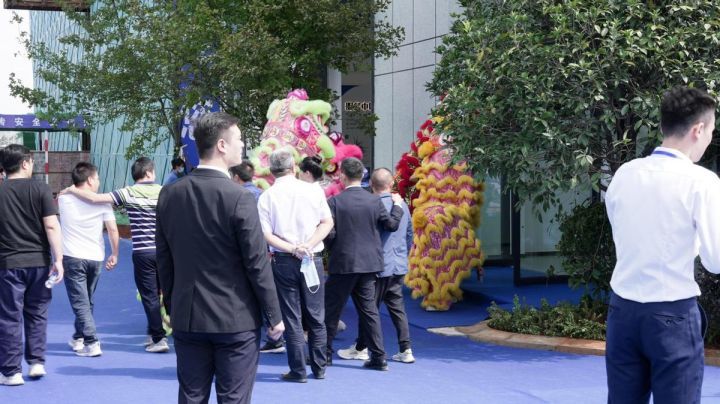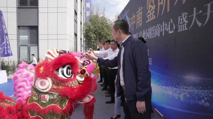 在招商中心开放之际,祥瑞的金狮也来到现场祝福。在锣鼓喧天的喜庆氛围中,昆明国家高新区管委会张洋、中南高科渝滇战区招商负责人梁国栋及中国银行、兴业银行及各商协会代表等领导一起为金狮点睛。祥瑞的金狮在热闹的锣鼓声中,为中南高科昆明智汇产业园招商中心带来美好祝愿。