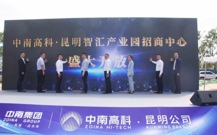 “中南高科昆明智汇产业园招商中心正式开放!”随着铿锵的话语,昆明国家高新区管委会张洋、中南高科渝滇战区招商负责人梁国栋及中国银行、兴业银行及各商协会代表等8位领导一起在激昂的音乐声与绚丽的启动画面的配合下,完成了中南高科昆明智汇产业园招商中心的开放仪式!