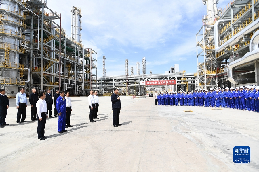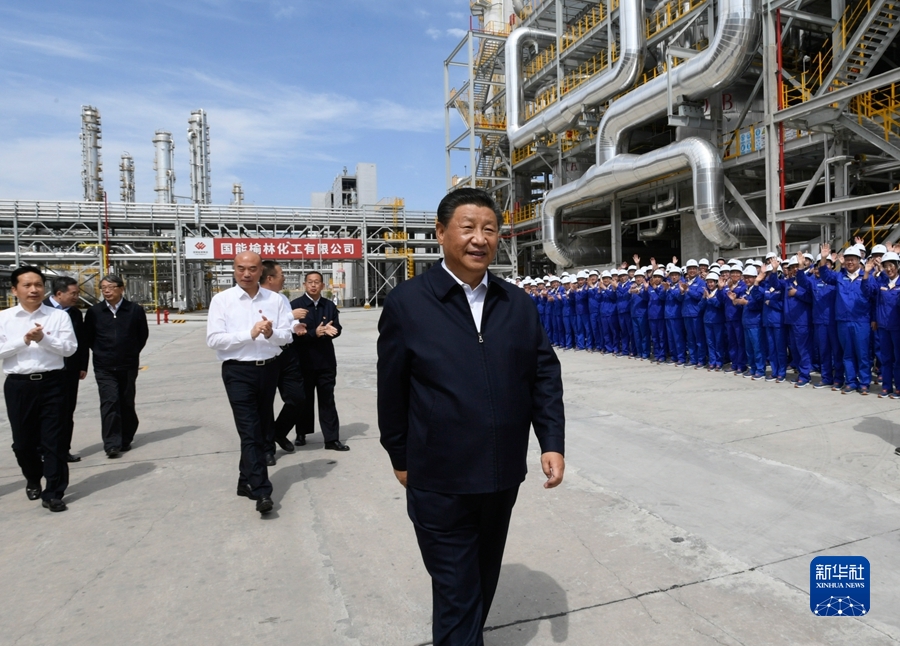 9月13日至14日,中共中央、国家、在陕西省榆林市考察。这是13日上午,在国家能源集团榆林化工有限公司年产4万吨乙二醇项目现场考察。新华社记者 李学仁 摄
