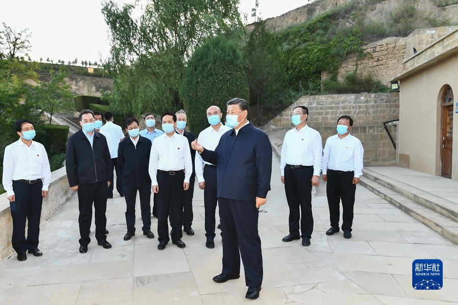 9月13日至14日,中共中央、国家、在陕西省榆林市考察。这是13日下午,在米脂县银州街道高西沟村龙头山山顶,考察黄土丘陵沟壑区综合治理情况。新华社记者 谢环驰 摄