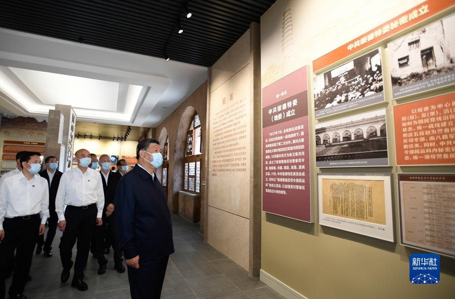 9月13日至14日,中共中央、国家、在陕西省榆林市考察。这是14日上午,在中共绥德地委旧址考察。新华社记者 李学仁 摄