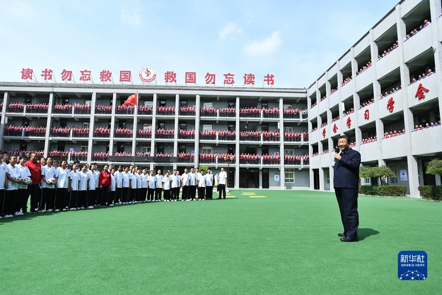 9月13日至14日,中共中央、国家、在陕西省榆林市考察。这是14日上午,在绥德实验中学考察时,同师生亲切交流。新华社记者 谢环驰 摄