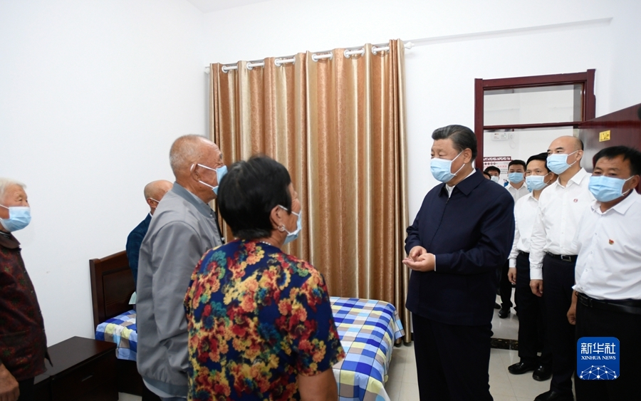 9月13日至14日,中共中央、国家、在陕西省榆林市考察。这是14日下午,在绥德县张家砭镇郝家桥村互助幸福院,同村里的老人亲切交流。新华社记者 李学仁 摄