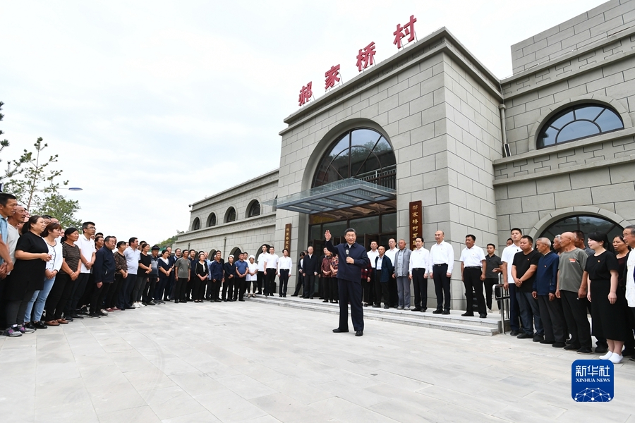 位于绥德县城西南的张家砭镇郝家桥村,是绥德地委在抗战时期经过调查研究发现的一个模范村,通过开展“村村学习郝家桥,人人学习刘玉厚”活动,掀起了大生产热潮。党的十八大以来,郝家桥村积极发展特色产业,村容村貌和村民生活发生了深刻变化,荣获“全国脱贫攻坚楷模”荣誉称号。14日下午,来到这里,详细观看村史展览,了解这个“红色山村”的光荣革命历史以及革命传统传承情况。随后,来到村民侯志荣家中看望。侯志荣一家曾经因病致贫,靠着各级帮扶和自身努力016年摆脱贫困。强调,看到你们一家人日子越过越好、人丁兴旺,我感到很欣慰。让乡亲们过好光景,是我们党始终不渝的初心使命,就要把这件事情干好,不断交上好答卷。全党全国全社会都要大力弘扬脱贫攻坚精神,奋发图强、自力更生,不断夺取全面建设社会主义现代化国家新的更大胜利。
