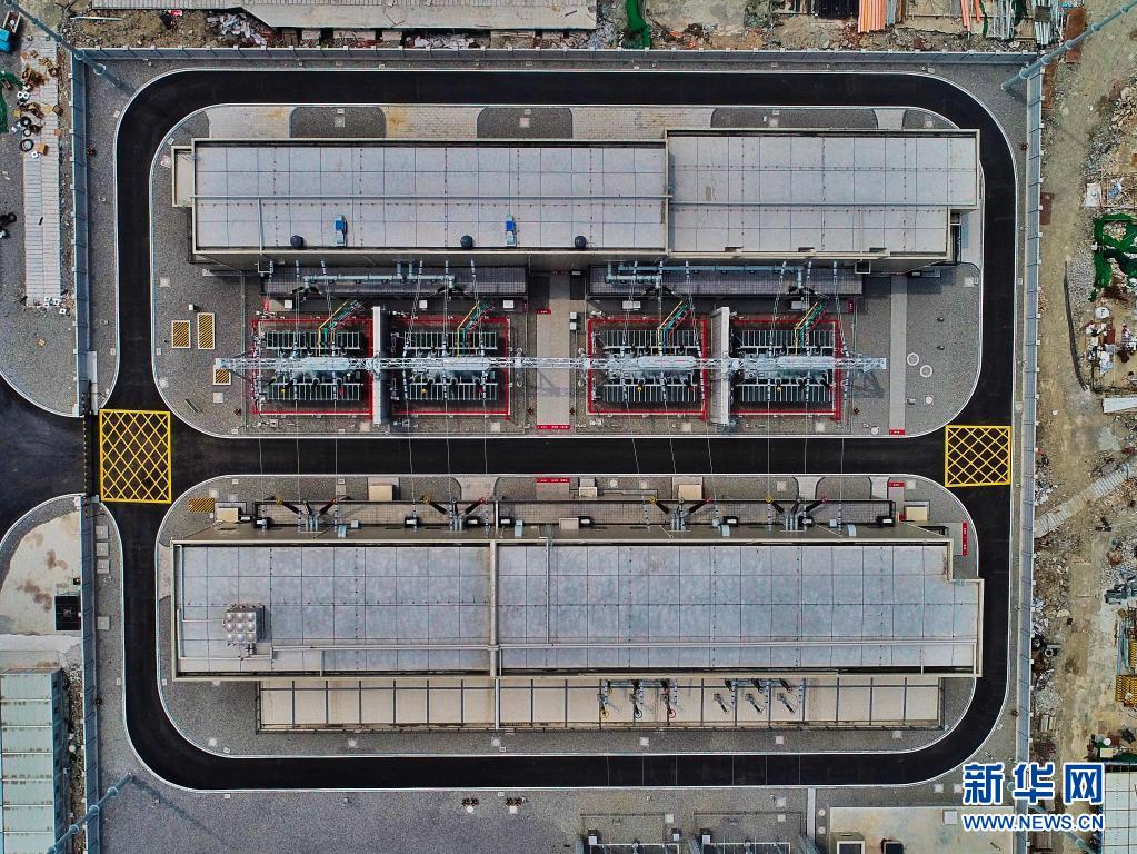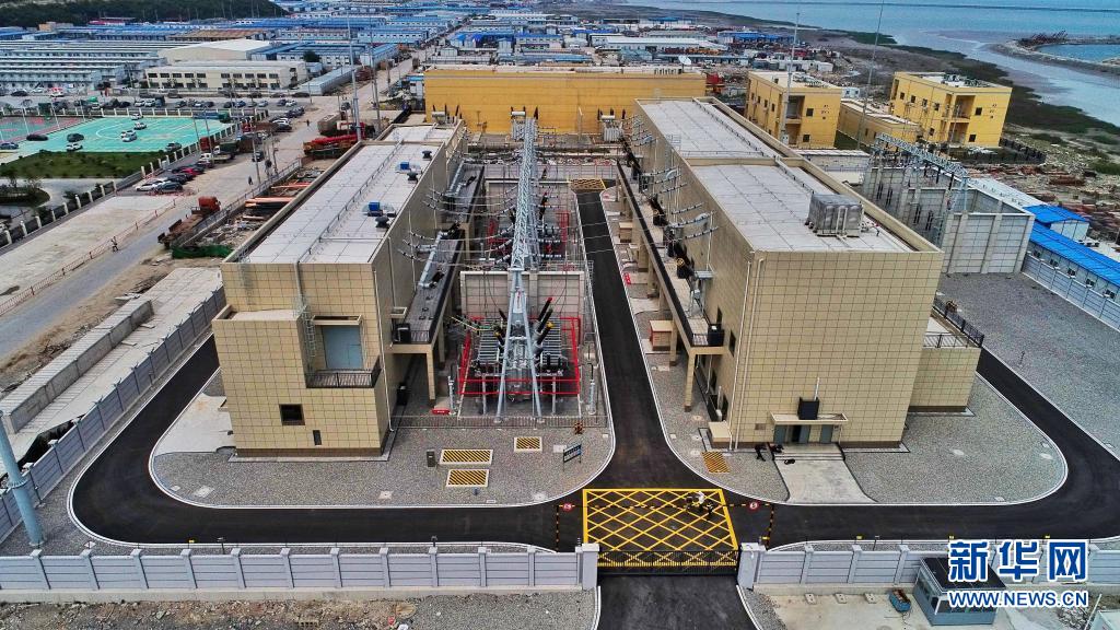 空中俯瞰鱼山岛220千伏长礁变电站,海上风电通过该变电站供给鱼山岛绿色石化基地使用(5月16日摄,无人机照片)。 新华社记者 徐昱 摄