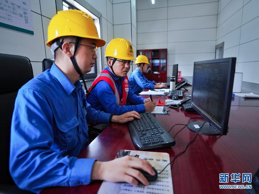 5月16日,鱼山岛220千伏长礁变电站内工作人员正在监控并网的海上风电场运行情况,海上风电通过该变电站供给鱼山岛绿色石化基地使用。 新华社记者 徐昱 摄