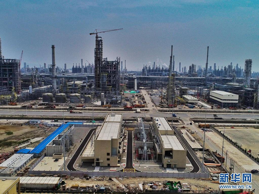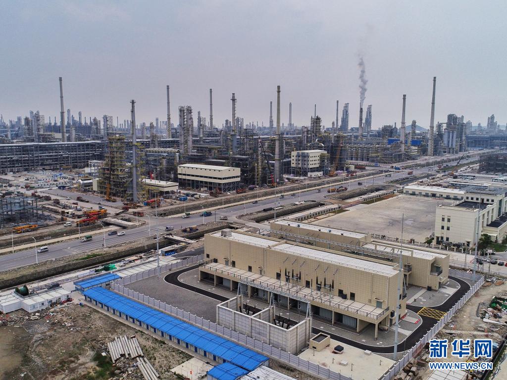 空中俯瞰鱼山岛绿色石化基地,海上风电将全部供给该基地使用(5月16日摄,无人机照片)。 新华社记者 徐昱 摄
