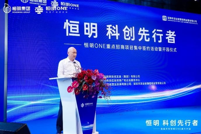 龙岗区人民政府副区长陈广文先生在仪式上发表讲话,他表示:龙岗区将大力实施“一芯两核多支点”发展战略的总体思路,区政府对恒明one产业园寄予厚望,希望恒明one园区开园运营后打造成为片区具有代表性的高品质一流园区。