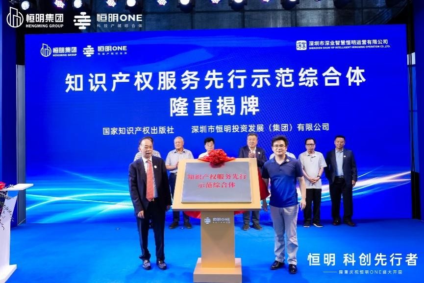 仪式上,国家知识产权出版社、龙岗区融媒集团、国信证券等金融机构分别与恒明集团进行了知识产权服务先行示范综合体、龙岗区文创大厦、恒明one金融服务平台揭牌,深圳市众信电子商务交易保障促进中心、虹彩检测、凯泽金阳、菲尔尼斯健身俱乐部等园区入驻企业、商家、配套服务资源进行了集中签约。