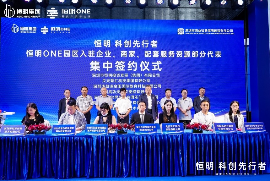 9月日,恒明one重点招商项目集中签约活动暨开园仪式在龙岗恒明one园区隆重举行,原深圳市政协/中小企业发展促进会会长王顺生、原深圳市人大副主任/深圳市商业联合会会长庄礼祥、龙岗区人民政府副区长陈广文、广东省政协委员/中国(深圳)综合开发研究院院长曲建、深圳市商务局投资推广处副处长鲁云帆、恒明集团董事长陈仁武、执行董事陈伟程、董事副总裁陈志杰等领导/嘉宾出席了活动。商协会、行业协会、金融服务平台机构、园区入驻商家资源、意向企业等两百余位嘉宾共同见证。