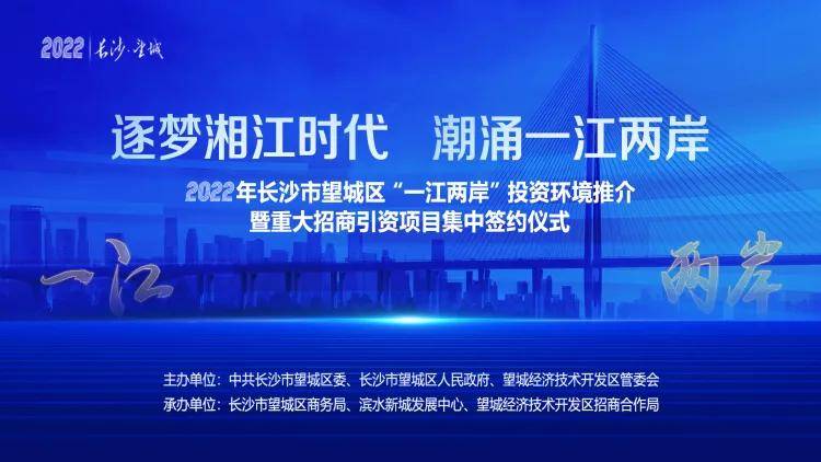 上周,22年长沙市望城区“一江两岸”投资环境推介暨重大招商引资项目集中签约仪式在望城区紫鑫戴斯酒店举行。