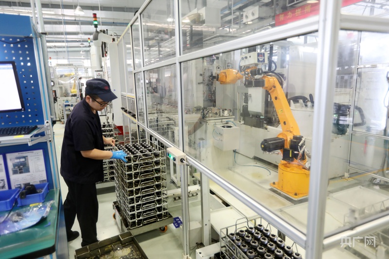 在嘉興桐鄉雙環傳動生産車間,機械臂提高了工作效率(央廣網記者魏煒 攝)