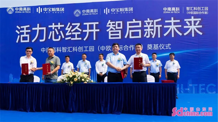 中国山东网-感知山东6月11日讯(记者 江学俊)6月11日,智汇科创工园(中欧国际合作港)奠基仪式在淄博经开区举行。
